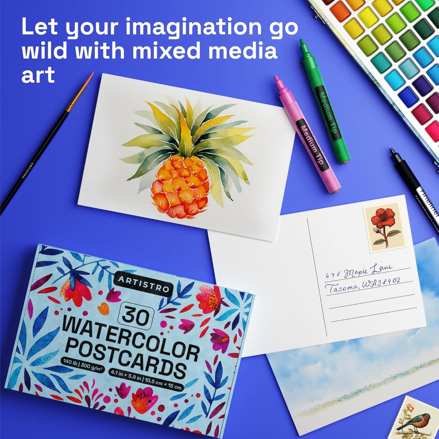 ARTISTRO 30 Watercolor Postcards 4x6 Inches - Heavyweight Paper Cards 140lb (300gsm) - Blank Postcards for Mailing, DIY Thank You Card, Greetings Cards, Easter, Invitations, Birthday and More(30 Postcards)