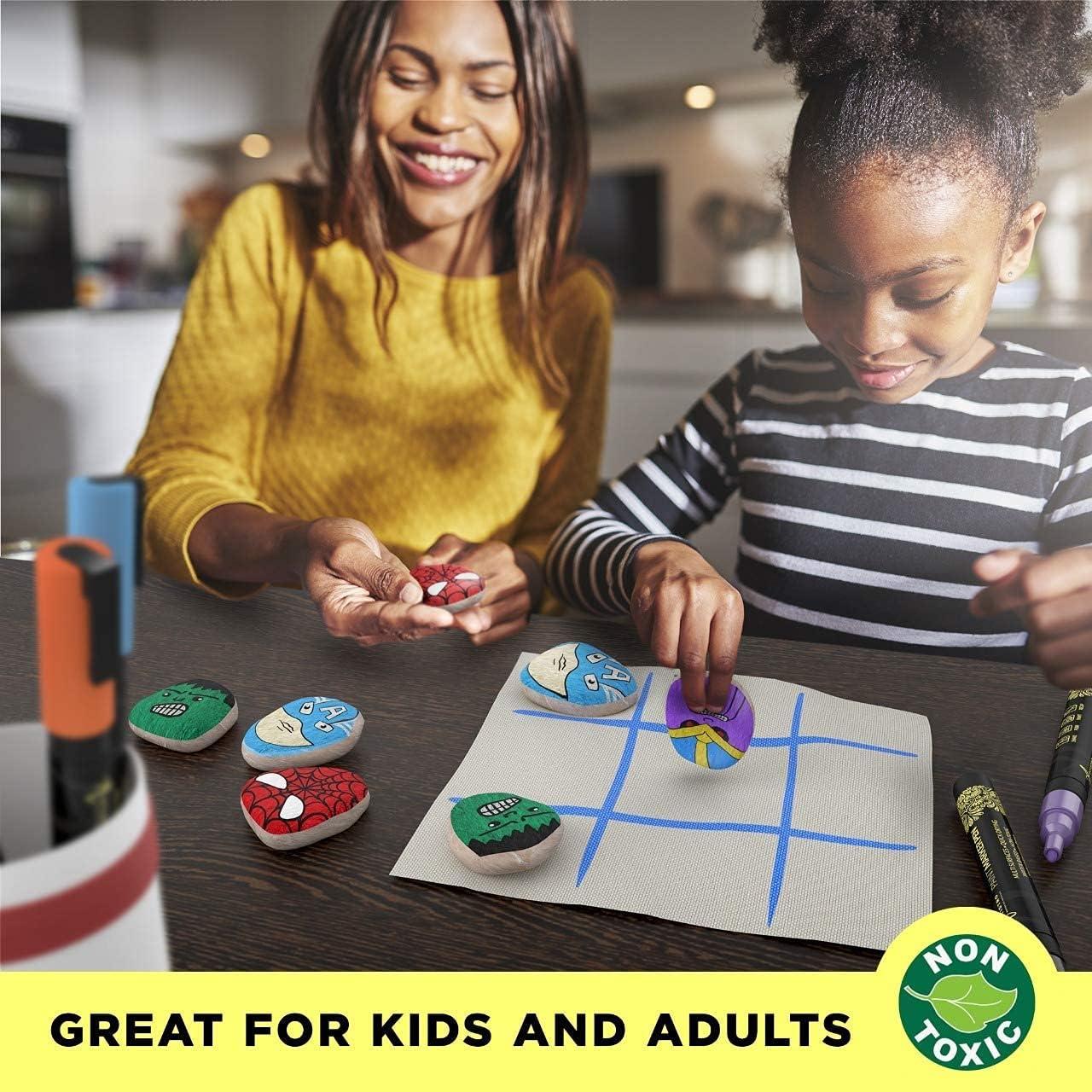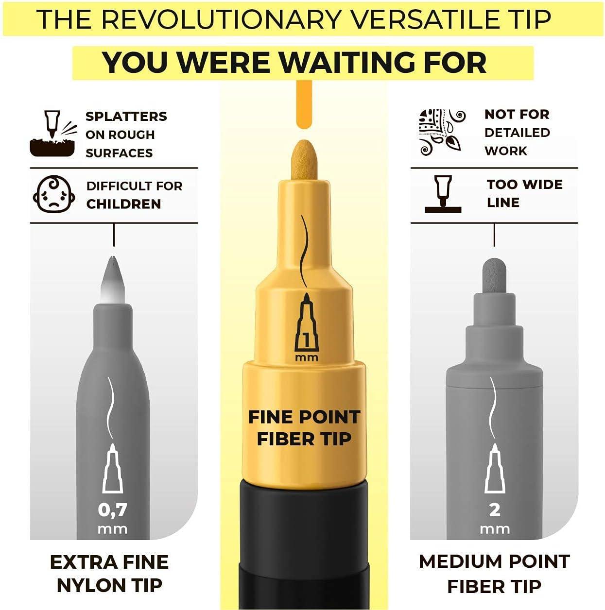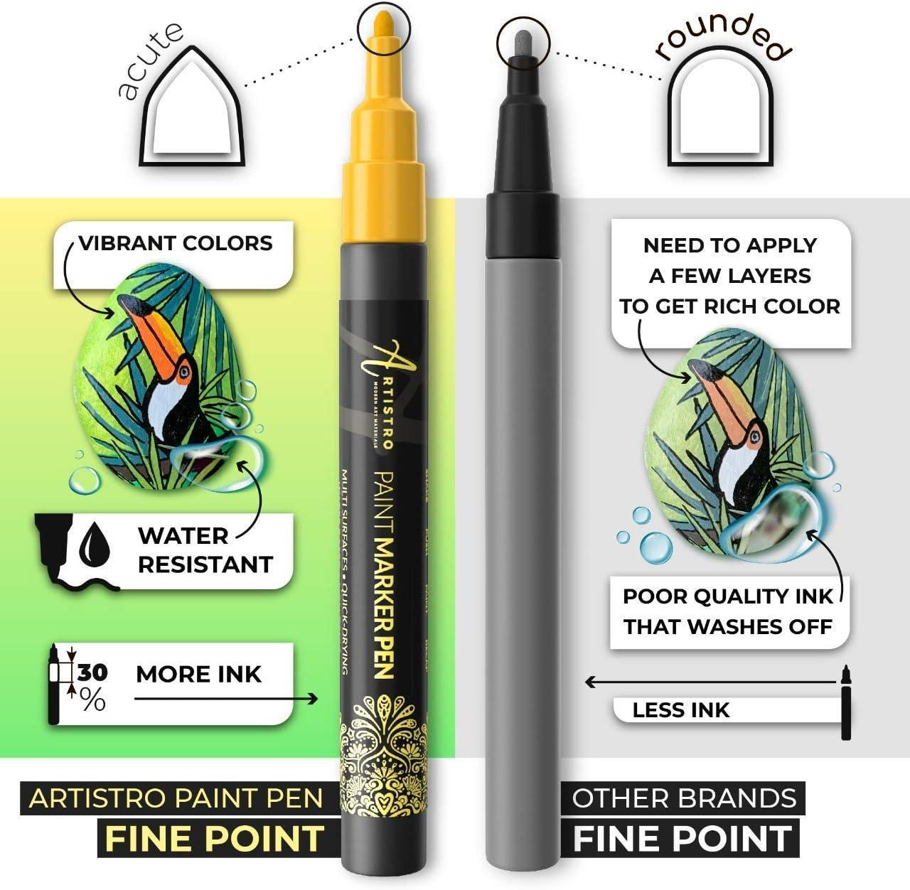 Artistro Bundle includes 42 Acrylic Paint Markers Extra Fine Tip and 30 Acrylic Paint Markers Fine Tip. Apply these paint pens to almost any surface including: canvas, metal, pottery, wood, plastic, stone, polymer clay, ceramic, glass, porcelain, fabric, resin, paper mache, leather, Styrofoam, watercolor paper, rock, poster board and more! These paint markers turn your art projects into an enjoyable process. Nontoxic (although nontoxic, do not put paint in contact with food). Easy soap and water cleanup when wet or after a few hours of applying. Before you start painting, make sure that the surface you want to draw on is smooth, clean and dry By doing this, the tips of the permanent Acrylic-based marker will stay smooth forever and the beautiful colors will last longer. We confidently back our product with a 100% Satisfaction, no hassle, money-back guarantee. Customer satisfaction is on our top priority.