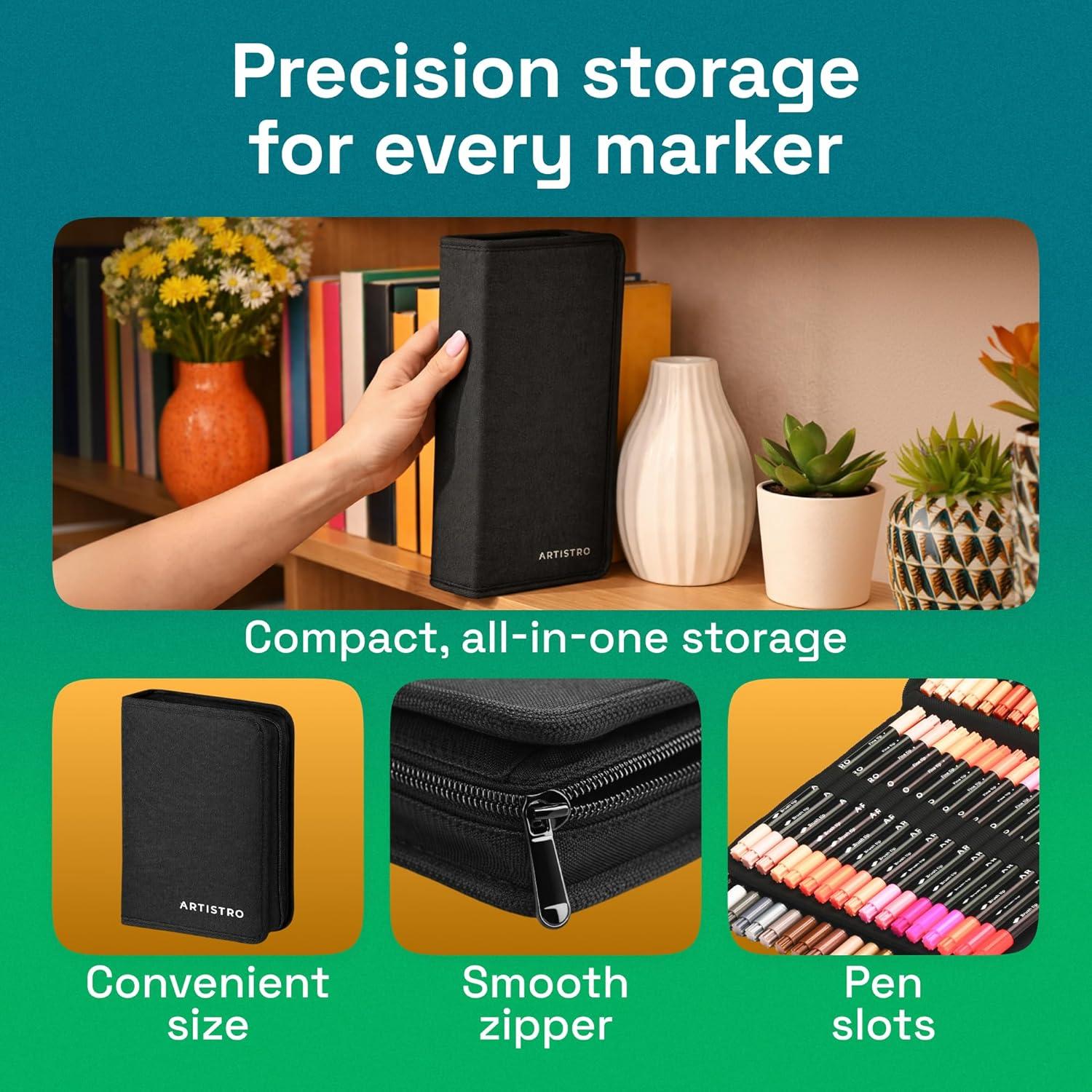 PORTABLE FABRIC STORAGE BAG: The included fabric bag keeps your markers organized and protected. It allows you to easily store, carry, and access your art supplies whenever inspiration strikes.