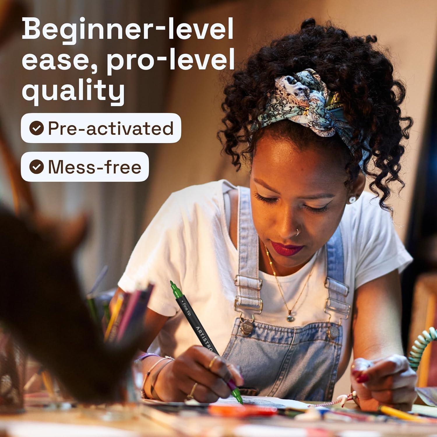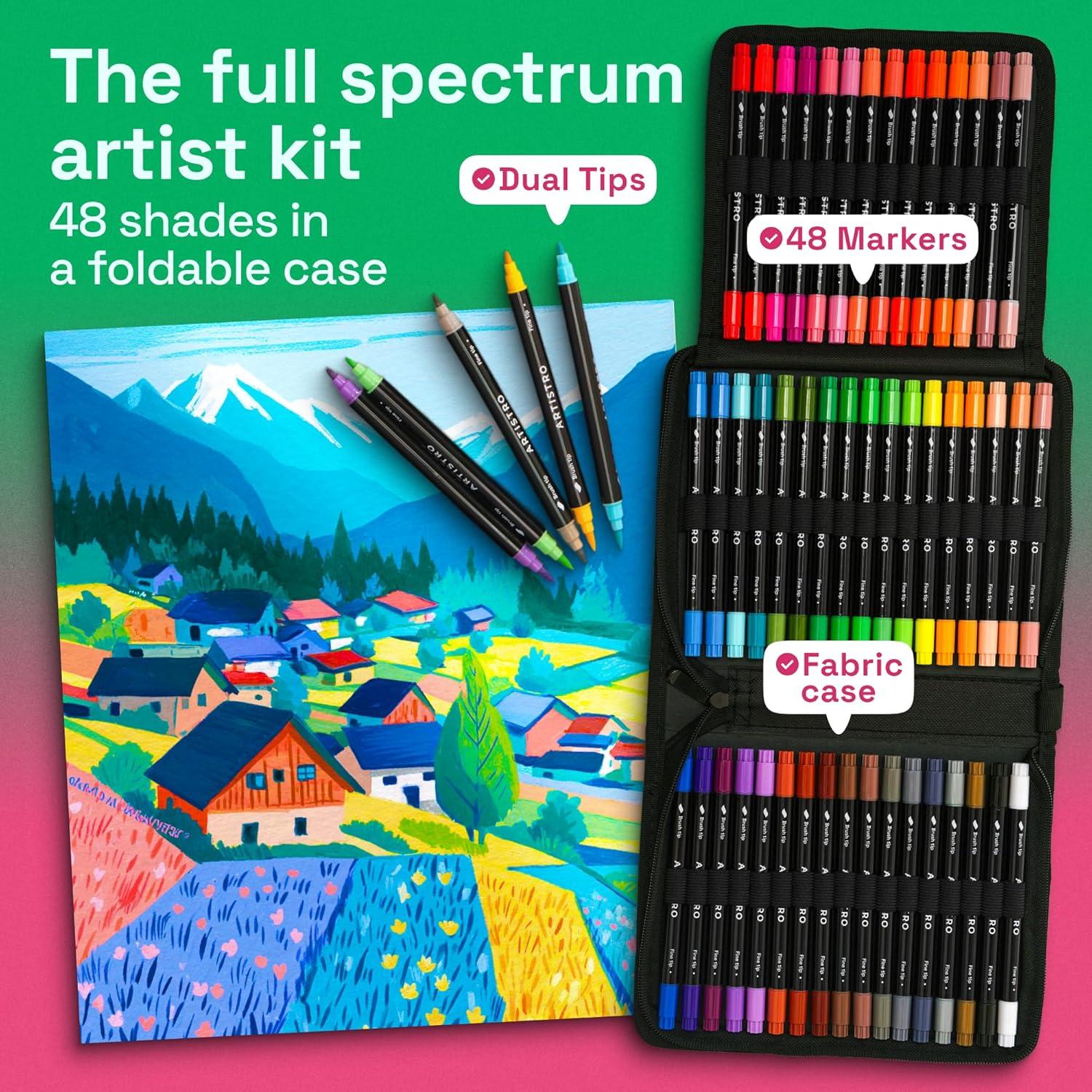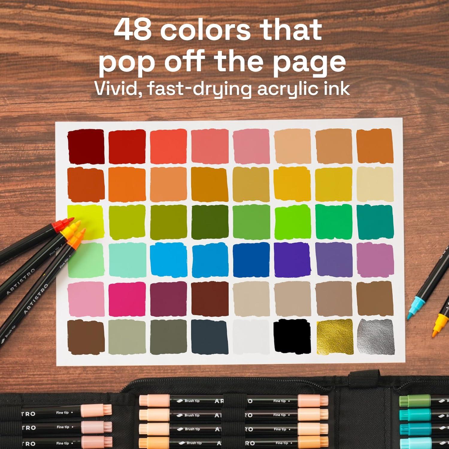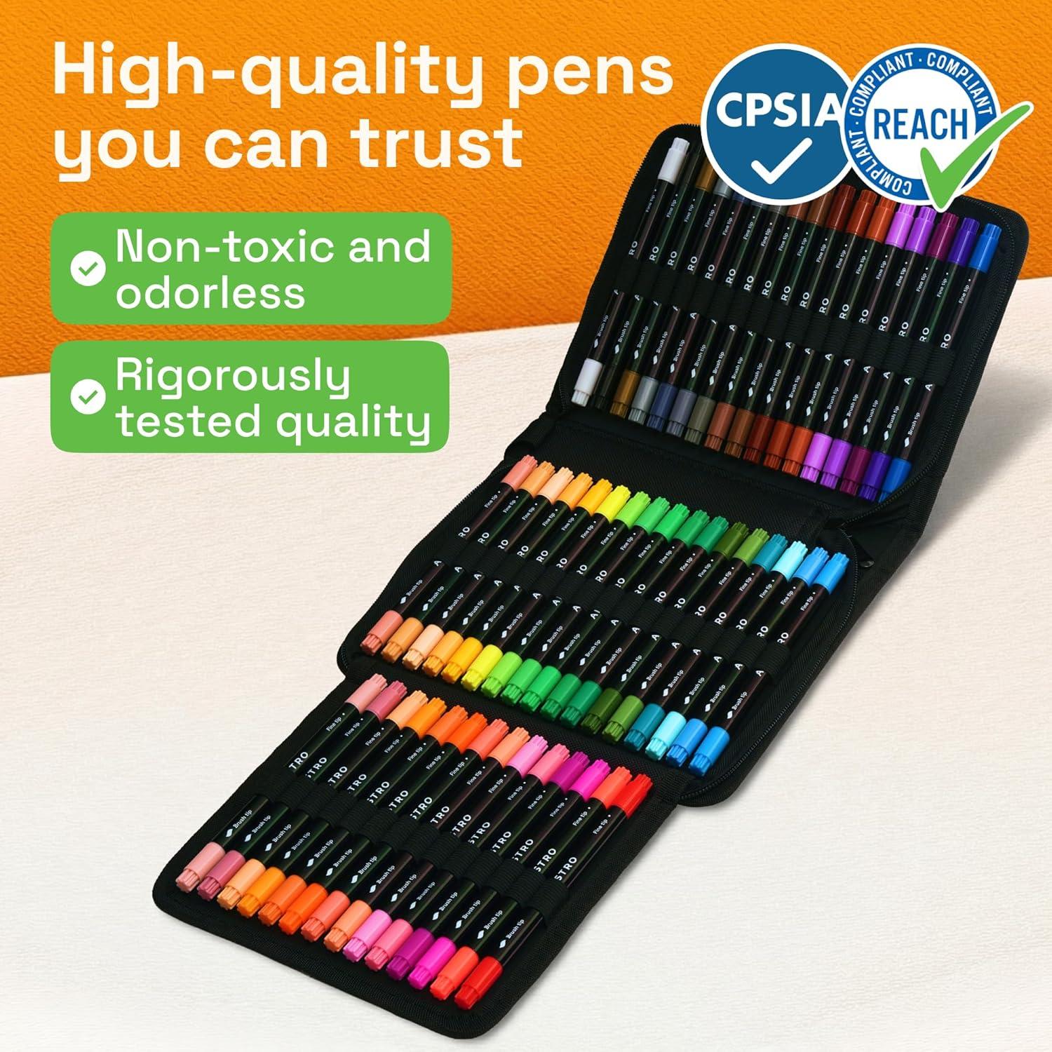 DUAL BRUSH AND FINE TIPS: Each marker features two versatile tips for different techniques. Use the fine tip for crisp outlines and lettering, or switch to the brush tip to create real paintbrush-like strokes.