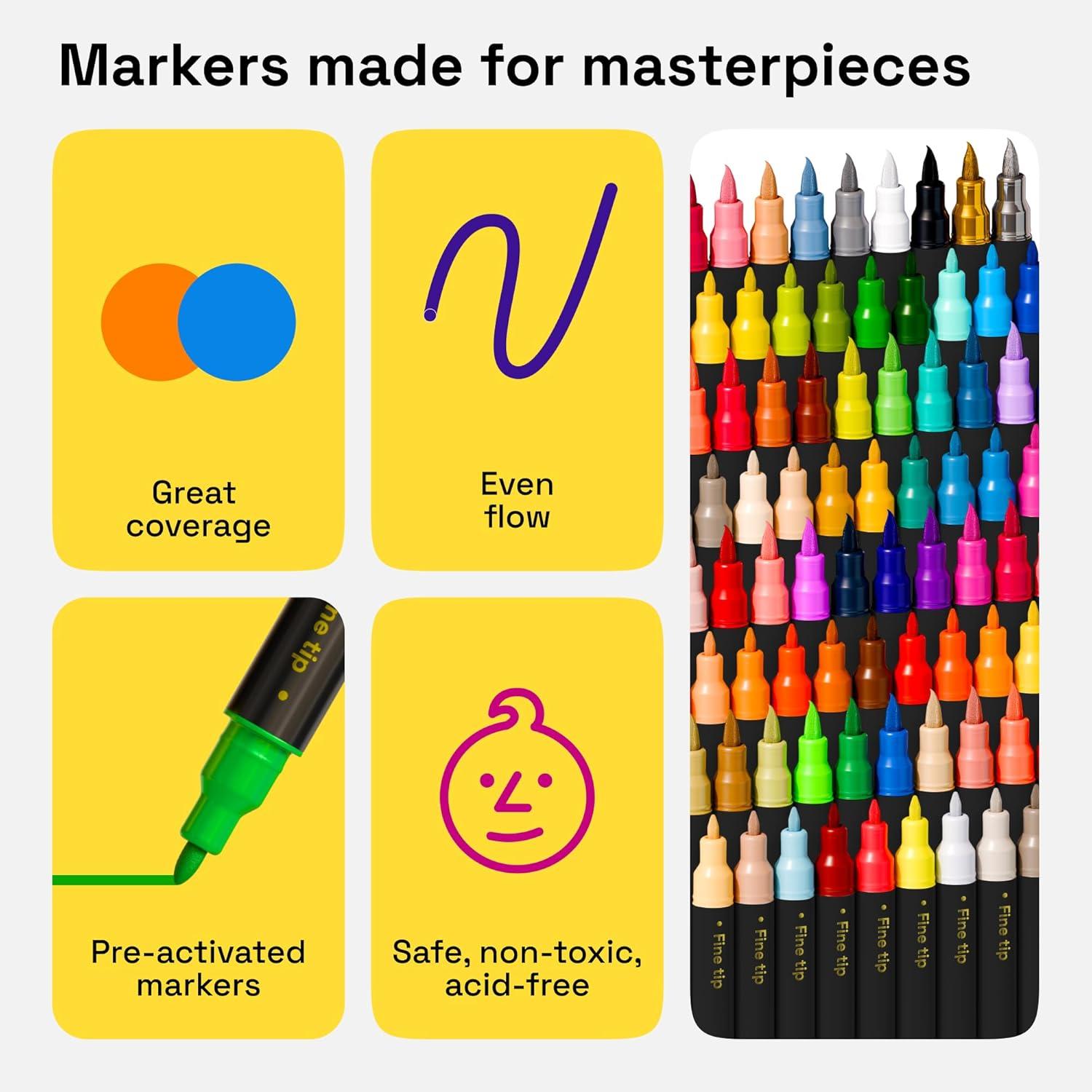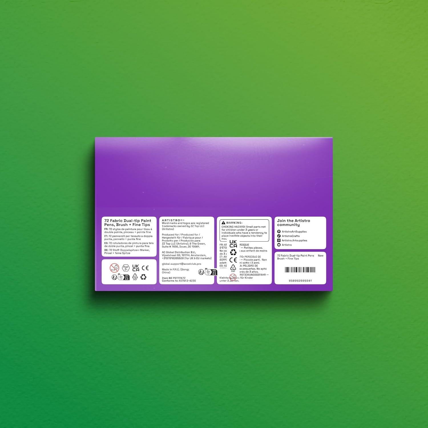 Dual-Tip for Unlimited Creativity: This 72-pack of Artistro fabric markers combines a 1 mm fine tip for precision with a flexible brush tip for shading, bold strokes, and filling large areas. Perfect for everything from detailed designs to expressive fabric art.