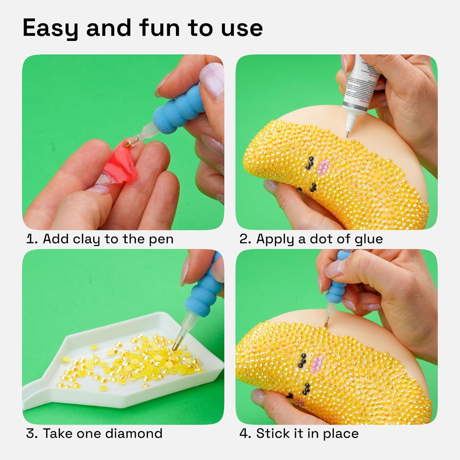 EASY TO USE: Simply apply glue to the designated areas, pick up the gems with the diamond painting pen, and set them onto the figurine. Our arts & crafts diamond painting tools are easy to use for beginners and come with helpful instructions.